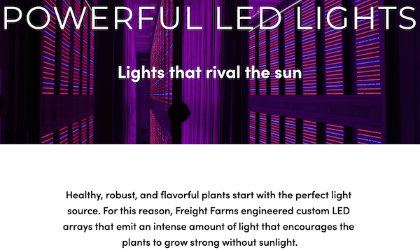 From what I understand, the increased spacing is possible as the Greenery is now equipped with lightweight growing panels that are movable using a rack-and-pinion system, allowing growers to harvest larger plants than previously possible. At the moment, the Greenery sells for $104,000, and the price is expected to increase starting next year. Reports are that they sold out of their initial production run and that there is a waiting list for the next 60. Watch a ten-second video that takes you inside the Greenery HERE and you can learn more at Freight Farms website HERE, where there is lots of good information on how to use the transportable growing container.