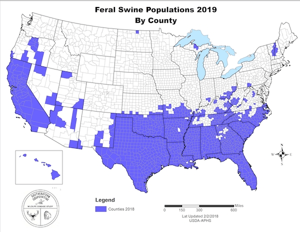 A paper just published in the Journal of Animal Science, “Perspectives on the past, present, and future of feral swine disease surveillance in the United States,” comes from a working group established by the USDA to address the feral swine problem. In describing the importance of feral swine management, authors write, “The rapid global spread of ASF (African swine fever) virus in the last 1-2 years in both domestic and wild swine has highlighted the need for vigilant surveillance and demonstrated the devastating impact of a foreign animal disease due to mortality, production losses and restrictions to international trade.” The full report is available HERE.