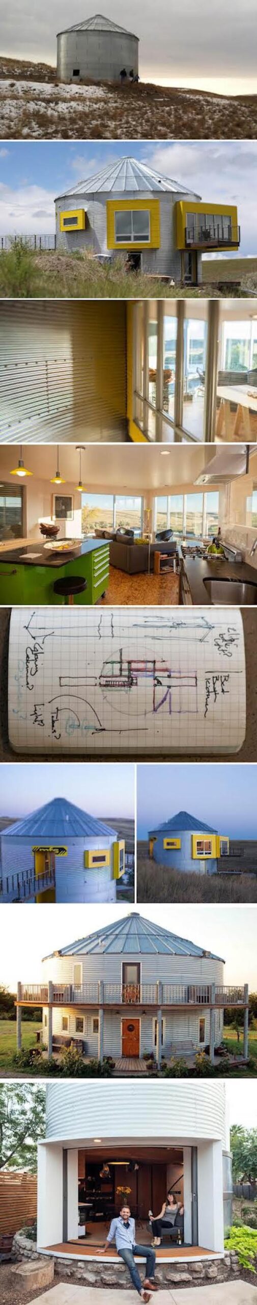This came back across my desk the other day, I thought it was cool then and I think it’s still extremely cool today. After inheriting about 250 acres of prairie land from her father, Kate Morris, put her long-held dream one day turning a grain storage bin into a home. Her property is located in Great Falls, Montana on which she had a grain bin constructed and then proceeded to do nothing for about 8 years. After Morris retired from teaching art and after a couple of years she spent taking care of her older brother, she was reunited with an architect whom she had taught in grade school. With his help and the help of an adventurous builder, she was able to get her dreams made into reality. It’s an amazing space that you just have to see to believe, crazy to think it was built in a grain bin with such an amazing and peaceful view. I tip my hat to a job well done! I also included some pics of a few other grain bins home that have popped up in the past few years. Amazing! (Source: Houzz)