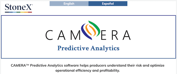 CAMERA’s predictive analytics software platform is helping ag producers take control of their production variables and gain a live view of their day-to-day risk levels. You are invited to learn more at a webinar we are co-hosting today called “Predictive Analytics for Ag Efficiency, Profitability and Risk Management.” The webinar is going to be held today, October 28 at 3:00pm CST with Fazal Wala, Edward Acevedo and Ryan Moe of StoneX. Click HERE to register