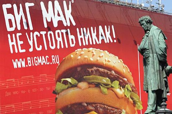 McDonald’s entry into the Soviet Union began with a chance meeting. In 1976, McDonald’s loaned some buses to organizers of the 1980 Moscow Olympics who were touring Olympic venues in Montreal. George Cohon, then the head of McDonald’s in Canada, took the visitors to McDonald’s as part of the tour. That same night, the group began discussing ways to open a McDonald’s in the Soviet Union. Fourteen years later, after Soviet laws loosened and McDonald’s built relationships with local farmers, the first McDonald’s opened in downtown Moscow on January 31, 1990. McDonald’s advertised the restaurant’s opening using the slogan: “If you can’t go to America, come to McDonald’s in Moscow.” Behind the scenes, the company received over 27,000 applications for 630 jobs.