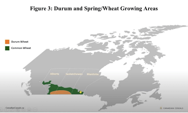 In contrast, winter wheat production increased +8% to 3 million MT, thanks to record yields. That also resulted in winter wheat production exceeding durum production for the first time in at least 22 years. Winter wheat is primarily grown in Ontario, where soil moisture levels were, and continue to be superior to the spring wheat and durum growing areas of the prairies, according to FAS.