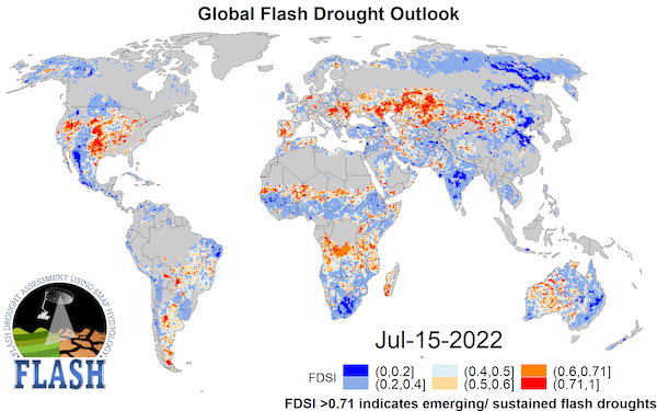 There are a couple of tools for early flash drought detection currently being tested. One from Texas A&M uses NASA’s Soil Moisture Active Passive tool. Known as “FLASH” – FLash drought Assessment using SMAP Hydrology – the tool is designed to provide a near-real-time global flash drought outlook using surface soil moisture from SMAP. Check it out HERE. Another is the Evaporative Demand Drought Index (EDDI). NOAA says a particular strength of EDDI is in capturing the precursor signals of water stress at weekly to monthly timescales, which makes EDDI a potent tool for drought preparedness at those timescales. EDDI also uses the same classification scheme as the USDM to define drought conditions, so it is easy to read EDDI maps. Learn more HERE. (Sources: Discover Magazine, Drought.gov, NOAA, Texas A&M)