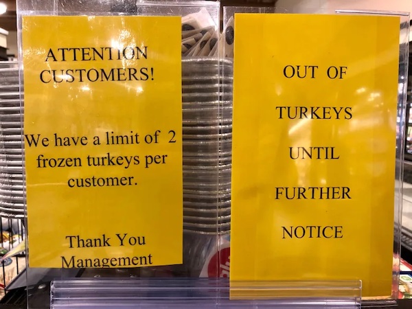 I tried to buy a few pounds of turkey at some local Kansas City BBQ joints the past few weekends and they all told us they were no longer selling turkey in big bulk because of the shortage. My wife went to two different grocery stores this week and they were both out of turkey in the deli section. I heard that several Jimmy John’s had to take some turkey sandwiches off its menu and that some Subway Sandwich Shops have also been struggling to source turkey in many parts of the country. Some grocery store executives we know are saying this holiday season it could get difficult in some areas to get turkey so we better plan early. During last year’s holiday season, some people weren’t able to find certain turkey sizes. The smaller sizes were particularly hard to find, this year things could get even worse