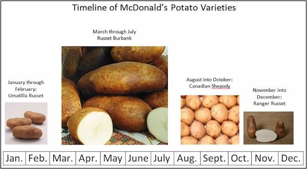 100 Circle Farms – Grows potatoes in circles so big they’re visible from space. Then their trusted processor, Lamb Weston, cuts them into fries at 70 miles per hour. 100 Circle Farms can dig anywhere from a thousand to twenty-four hundred tons of potatoes per day…and the majority of those will go into McDonald’s Fries.
