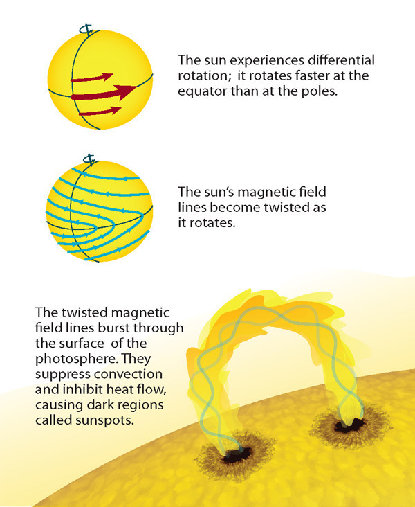 Solar storms include solar flares and coronal mass ejections (CMEs). Solar flares are eruptions of electromagnetic radiation launched from sunspots into the sun’s atmosphere. The most powerful solar flares are “X-class” flares, which are the least common type. The smallest ones are A-class, followed by B, C, and M. Within each letter class there is a finer scale from 1 to 9 (M-1 to M-9, for example), although X-class flares have no scale limit. The most powerful flare measured with modern methods was in 2003, during the last solar maximum, and it was so powerful that it overloaded the sensors measuring it. The sensors cut out at X-28.