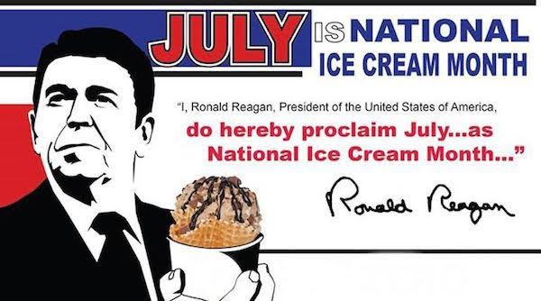 July is National Ice Cream Month and this year National Ice Cream Day falls on this Sunday, July 16th. Keep in mind, this is not just another made-up day used as an excuse to treat yourself to one of America’s all-time favorite desserts. President Reagan actually made this an officially recognized day back in 1984 when he declared the third Sunday in July as National Ice Cream Day. I’m told Reagan wanted to commemorate the treat enjoyed by over +90% of the US population, and the proclamation also garnered the dairy industry some great publicity.