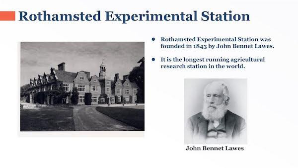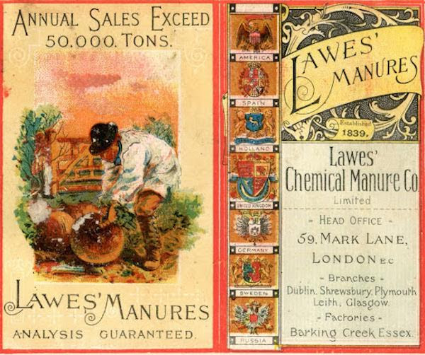 John Lawes famously stated that his discovery of synthetic fertilizer established that agriculture can be an artificial process or one that is not completely bound to the vagaries of nature. In the practical realm, his discovery led to the establishment of the fertilizer industry. In the scientific realm, Lawes would collaborate with Sir Joseph Henry Gilbert to found the Rothamsted Experimental Station, where the pair did research on the effects of artificial fertilizers on soil conditions, crop yields, and animal feeding. It’s worth mentioning that Rothamsted Experimental Station is still in existence today and is considered the oldest agricultural research station in the world.