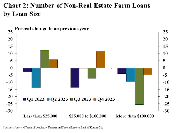 According to the KC Fed, “With interest costs now above average land value appreciation, farm operating profits will determine the magnitude of returns for financed land. Although growth in farmland values held firm in 2023, higher interest rates and a moderation in agricultural commodity prices have cut potential returns and could dampen demand for farmland—and thus farmland values—going forward.”