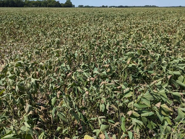 High temperatures in reproductive stage soybeans can result in aborted flowers, aborted small pods, aborted seeds in larger pods, and production of smaller seeds. Leaf loss can even occur under severe stress. Soybeans flower for several weeks so they have the opportunity to withstand short-term periods of stress. At the R3 stage – marked when the plant has a pod on at least one of the upper four nodes of 3/16-inch long or longer – heat or moisture stress can reduce pod numbers, seed number per pod, or seed size, which may reduce yield potential. The ability for soybean plants to recover from temporary stress decreases from R1 to R5. (Sources: University of Missouri Extension, Iowa State University Extension, NOAA, USDA)