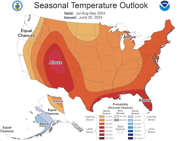 High daytime humidity can benefit plants because lower evaporation reduces water stress. High nighttime humidity slows the rate at which air temperatures fall. It is not uncommon for temperatures to remain above 80°F on summer nights if humidity is high (dew point above 70°F). So, although plants do not “feel” a high heat index, the slow rate of temperature decline during high-humidity nights shows through increased respiration.