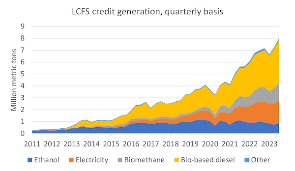 The LCFS currently requires fuel makers to buy tradable credits if their products generate more carbon emissions than the baseline set by regulators. Refiners that produce low-carbon fuels and gases can generate credits to sell. LCFS credits don’t expire and can be banked for future use.