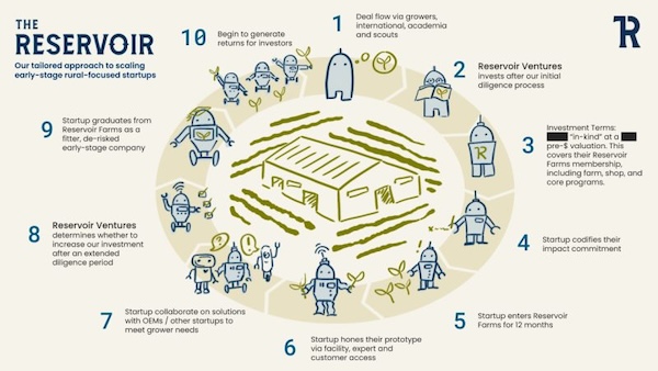 Automation in agriculture is moving forward at increasing speed as technologies finally catch up to the industry’s needs. However, many farm robotics and automation startups lack a key resource – a real farm to prove their technology. “The Reservoir” is a unique new incubator for these startups, where they’re not only developing early-stage agtech innovations but a workforce to operate these high-tech machines.